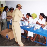 After a few days in Ambon, Dr. Yan, who we had known from Bandung, came to take us to visit the clinic where he is practicing in Taniwel, Seram, the largest of the Maluku islands. Dr. Yan has assisted on projects in the past before moving to Seram as a medical doctor. We have been trying for some time to re-establish contact with Dr. Yan. Upon learning of his work in this very remote area of Indonesia we felt that his efforts would make a worthwhile project to support. Once our journey to Taniwel began it took us about 12 hours to travel from Ambon to Seram Island which included a 1 ½ hour ferry ride from one island to the other. Our team was amazed by the natural beauty of the area, the crystal clear ocean waters and lush jungle vegetation as they traveled the rough roads in an ambulance provided by the clinic. They took the donated medical supplies consisting of midwife kits and 150 of the sponsored “Dasar Firman” books.