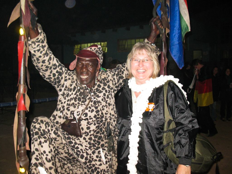 Today was the kick-off of the 2010 World Cup here in Johannesburg and we headed out the door with some of the Playing2Win volunteers around 10 am to take the trip to Soccer City, the stadium where South Africa would face Mexico. Normally this would have taken us an hour or so, but today was one very special day! By 3:30 we were still in the thick of traffic--cars with flags, cars honking their horns, cars with drivers wearing huge clown hats and glasses and people dancing in the streets and flags flying everywhere. It was chaotic, loud and very happy! South Africans everywhere were partying!